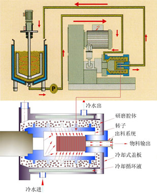 可實現低溫研磨 縮短漿料在磨腔內的滯留時間,有效抑制溫度上升。通過循環冷卻水的冷卻,可實現低溫研磨。 |